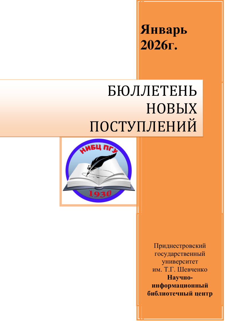 В информационный «Бюллетень новых поступлений» включены документы, поступившие в различные отделы НИБЦ ГОУ «ПГУ им. Т.Г. Шевченко» за месяц (период времени).